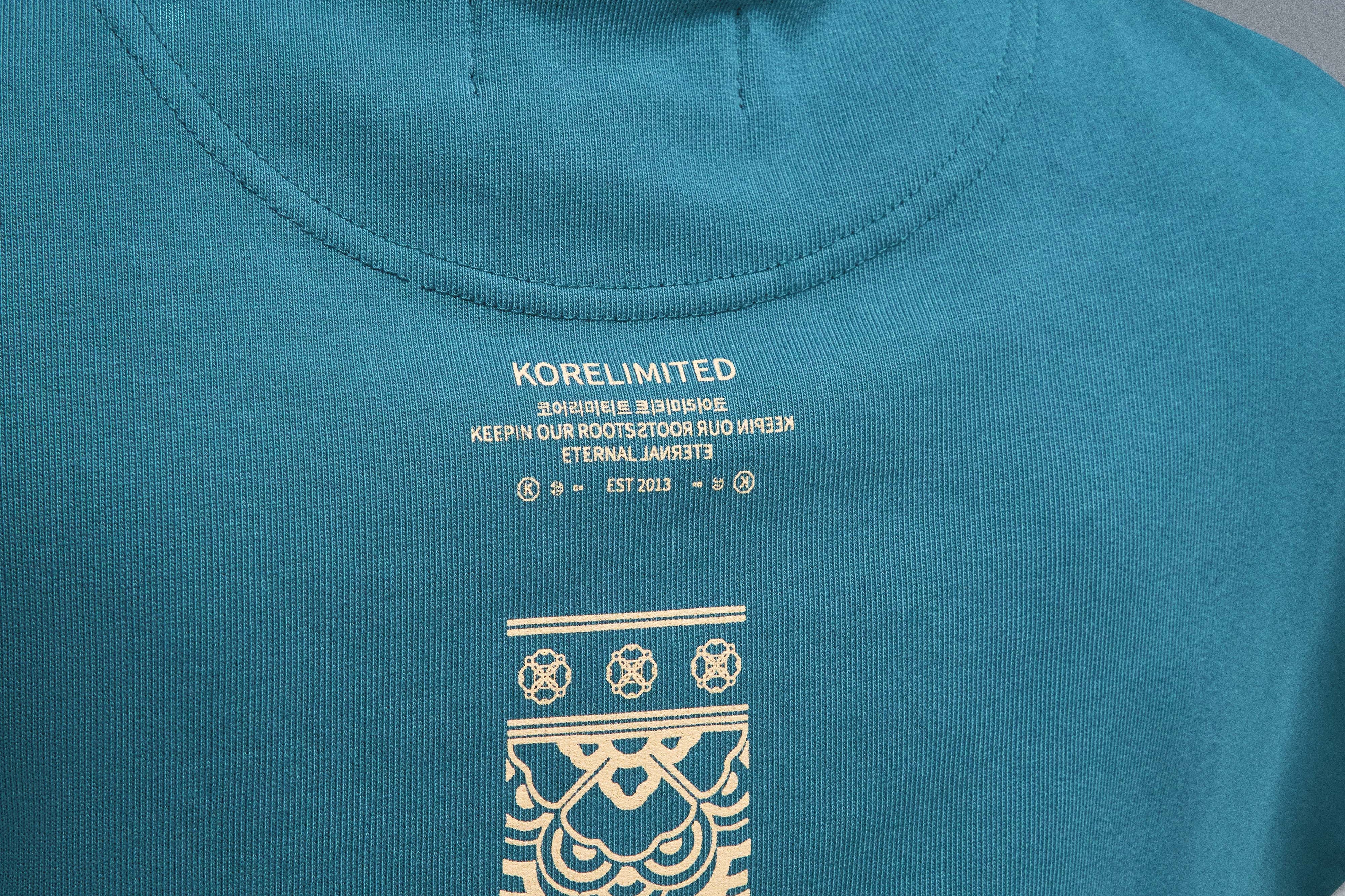 The KORELIMITED Dancheong Jacket in Teal pays tribute to Korea’s architectural artistry with patterns inspired by traditional dancheong—vibrant designs once used to protect and decorate temples and palaces. Featuring intricate floral motifs and clean symmetrical lines, this piece merges cultural heritage with modern streetwear style. A timeless expression of “Keepin Our Roots Eternal.” Also available in Navy.