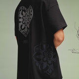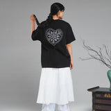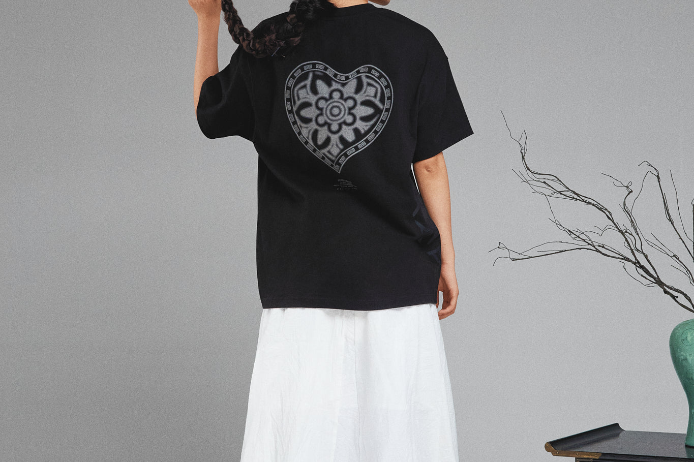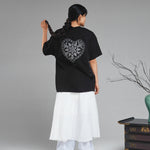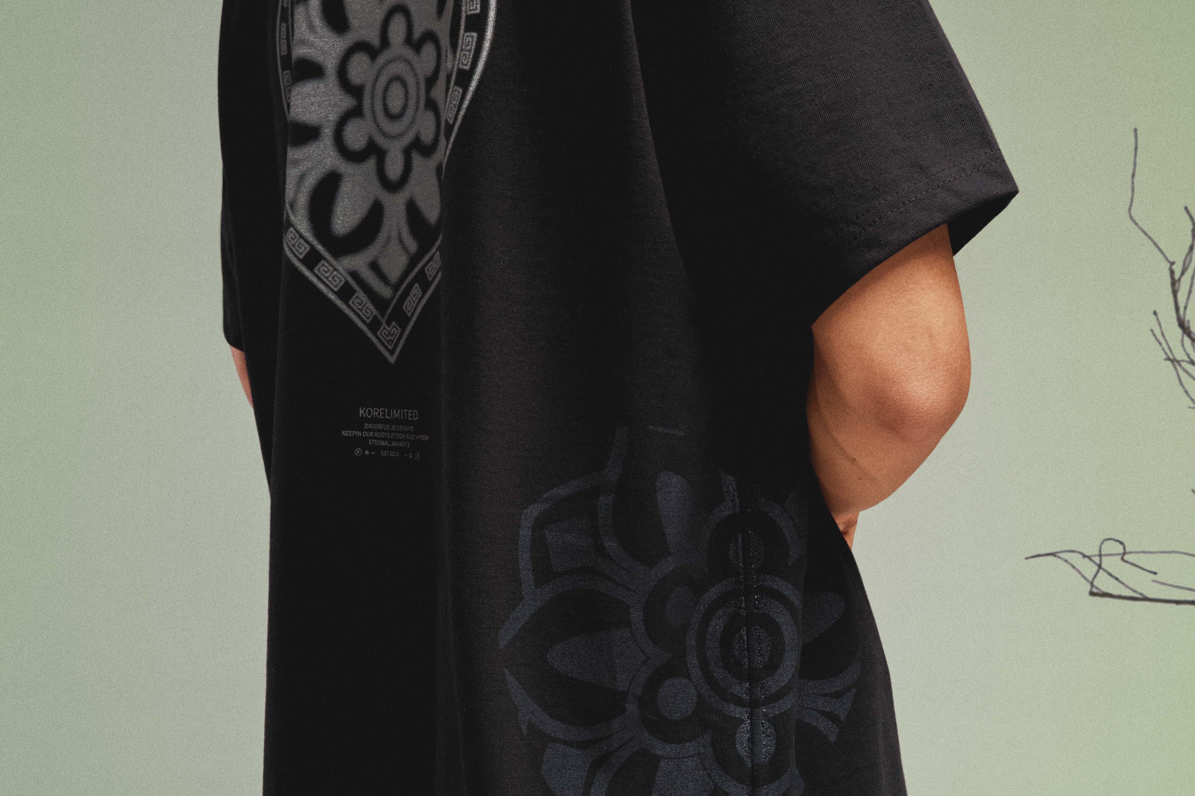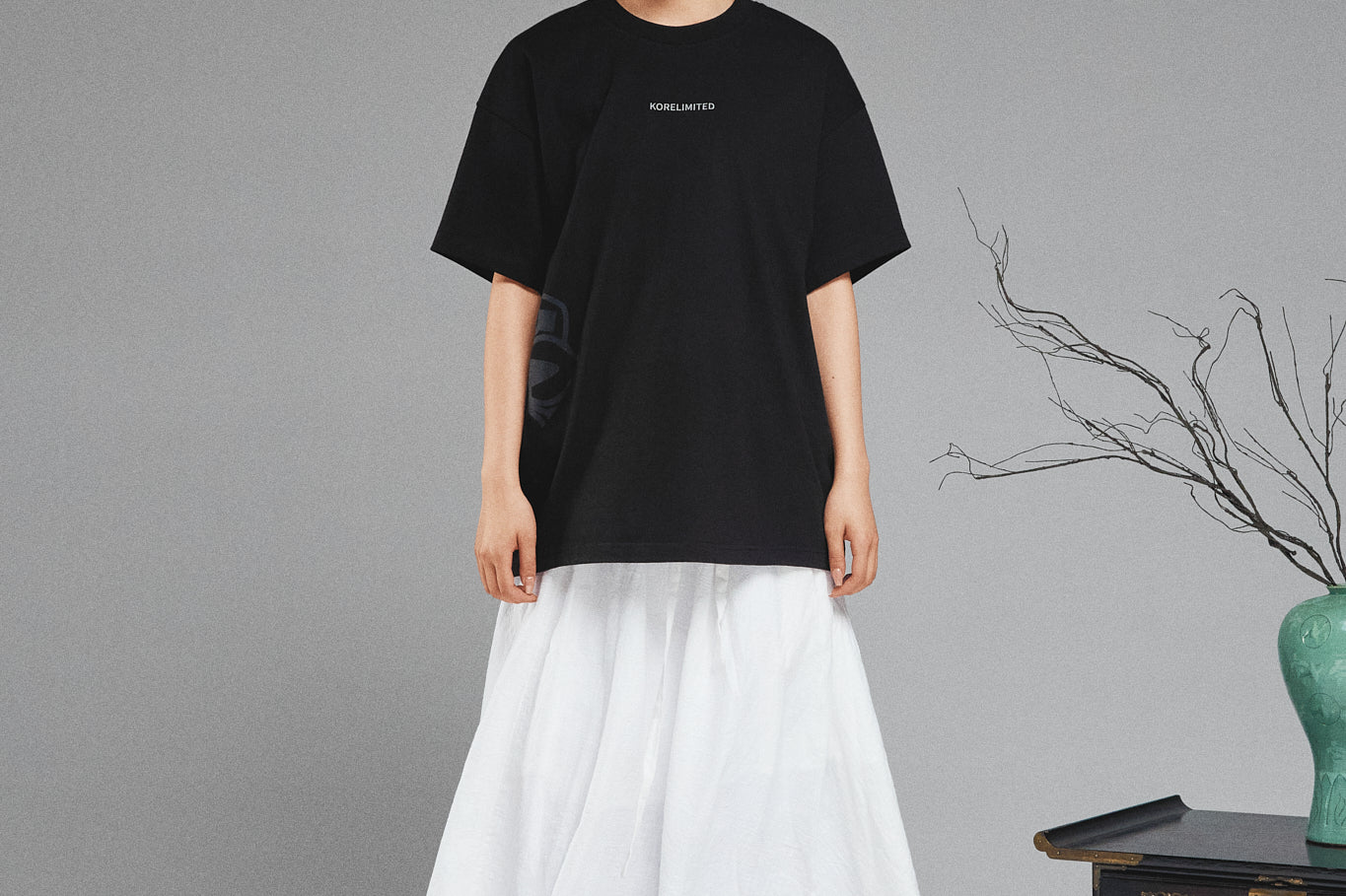 The Korelimited Hidden Heart Tee in Brown features the "KORELIMITED" brand name on the front, alongside the heart motif on the back and on the side front. The heart contains a traditional Korean motif, creating a unique streetwear look that honors timeless heritage. Also available in Black.