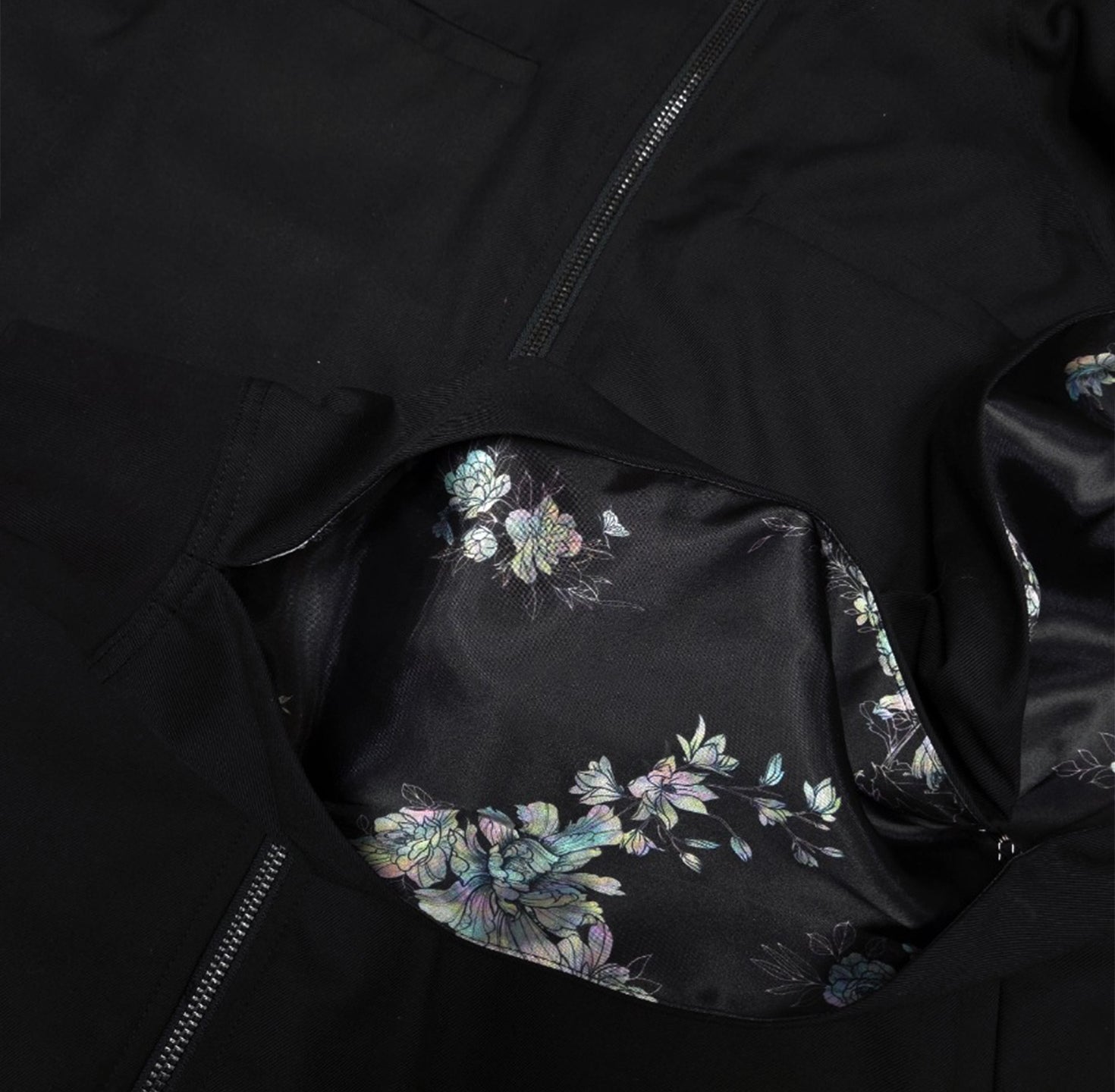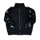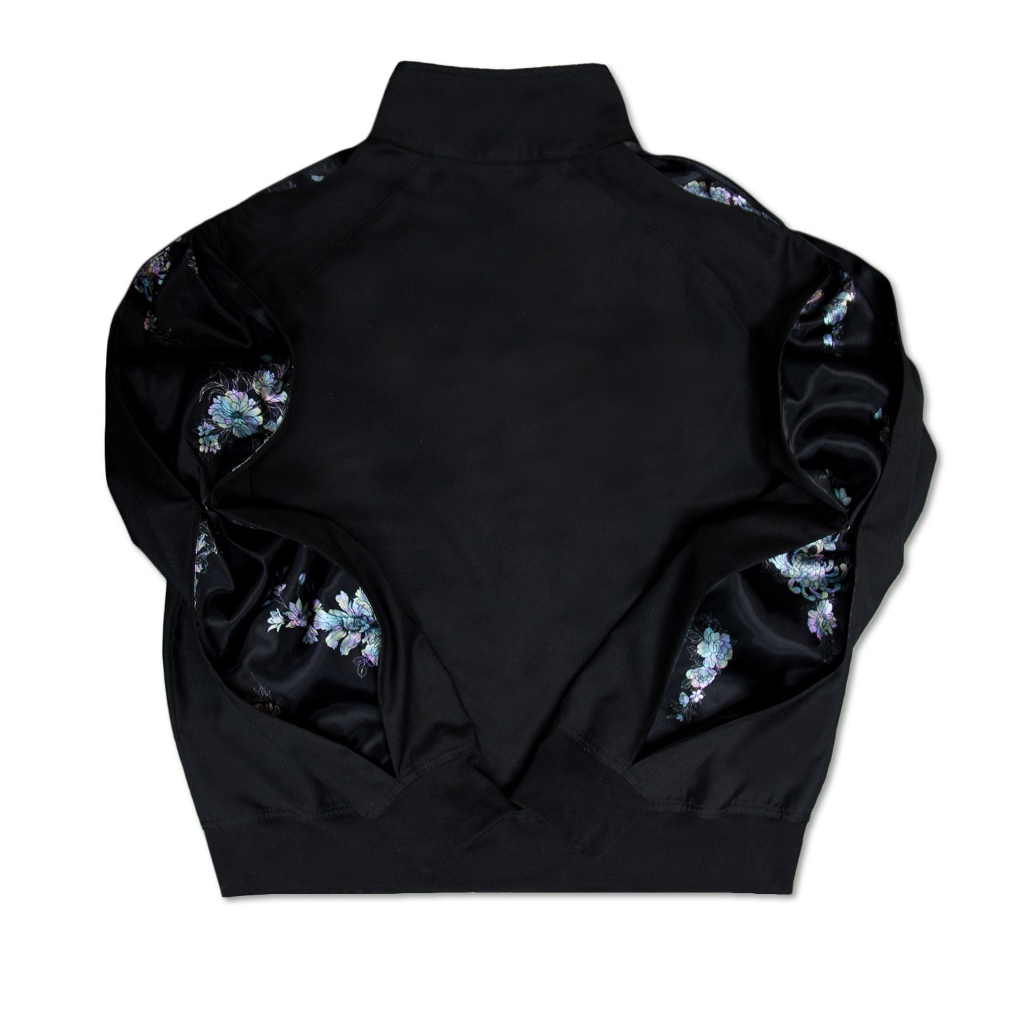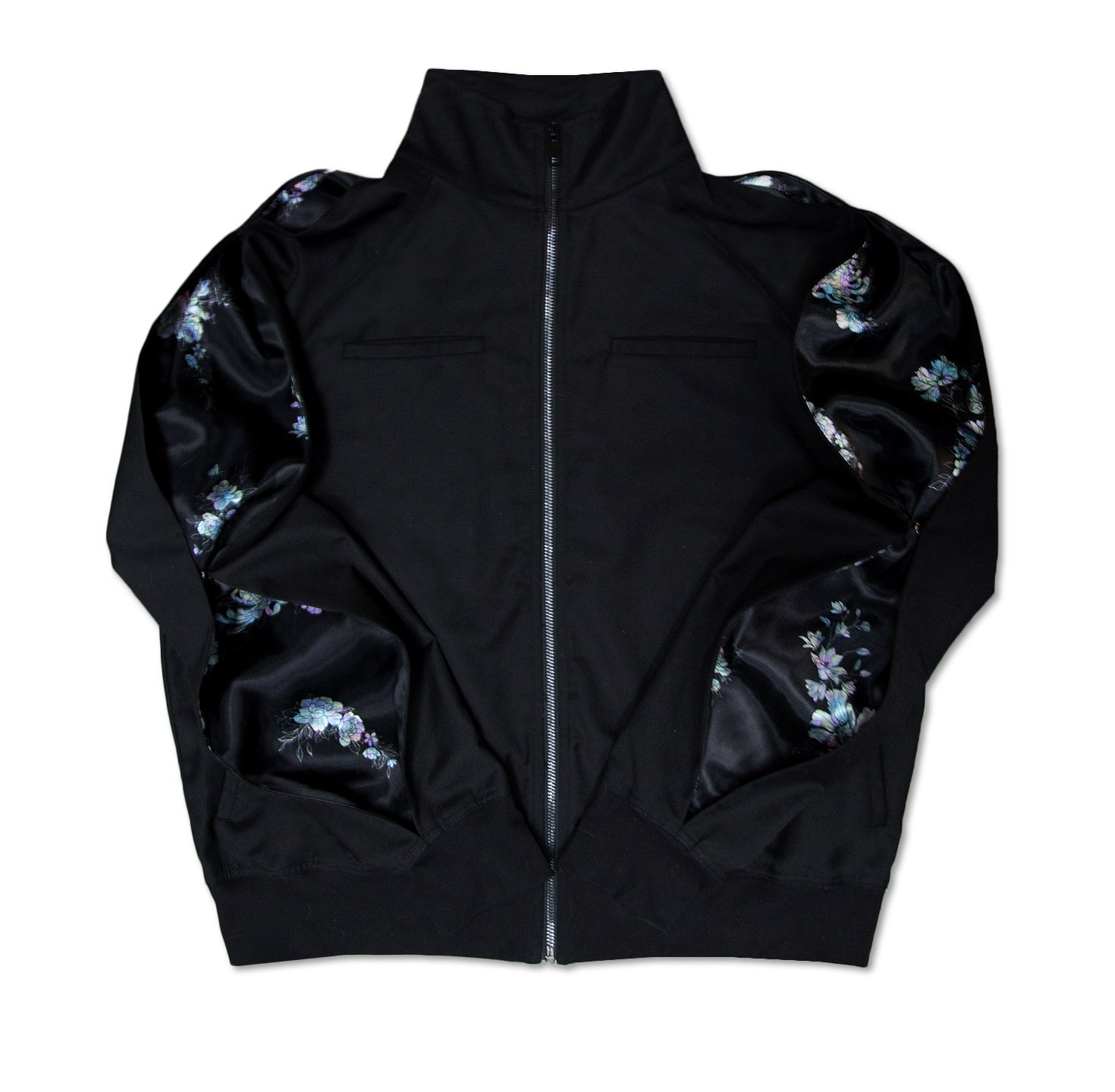 The KORELIMITED Hidden Tradition Track Jacket features custom silk inlays along the sleeves, revealing floral patterns inspired by traditional Korean garments. A refined fusion of heritage design and contemporary streetwear style.