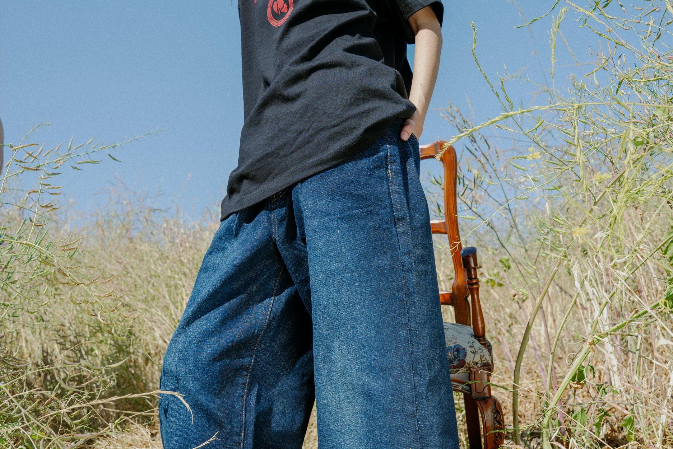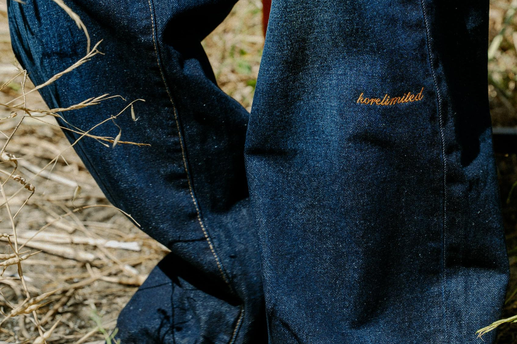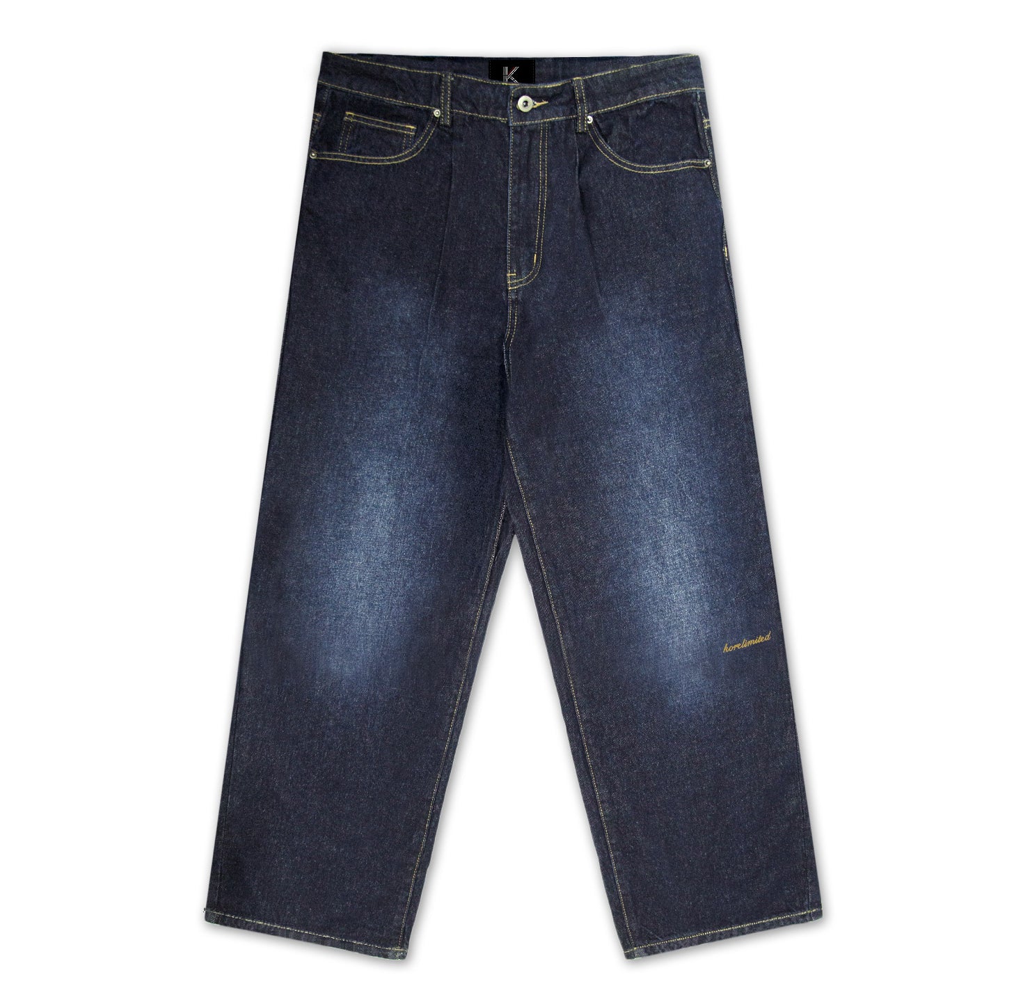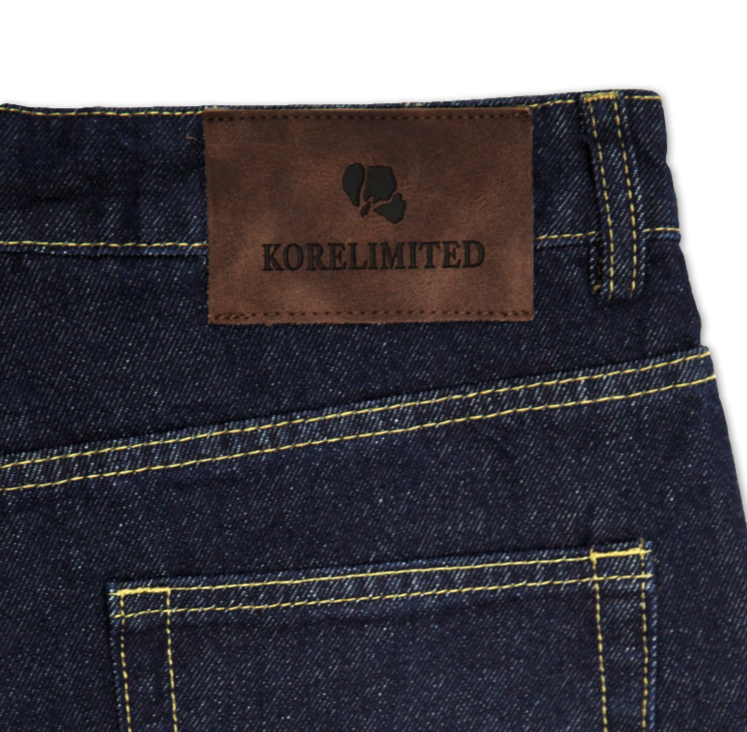 KORE Baggy Denim Pants — naturally faded, roomy denim with the signature KORELIMITED patch on the back. An embroidered Korelimited logo is placed on one of the pant legs. Perfect for staying comfy and fresh, whether you’re headed to class or just hanging out. Also available in Black Denim.