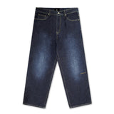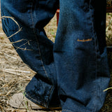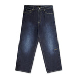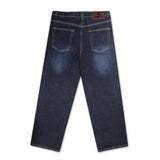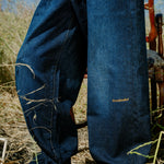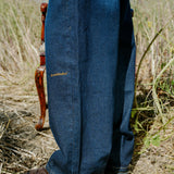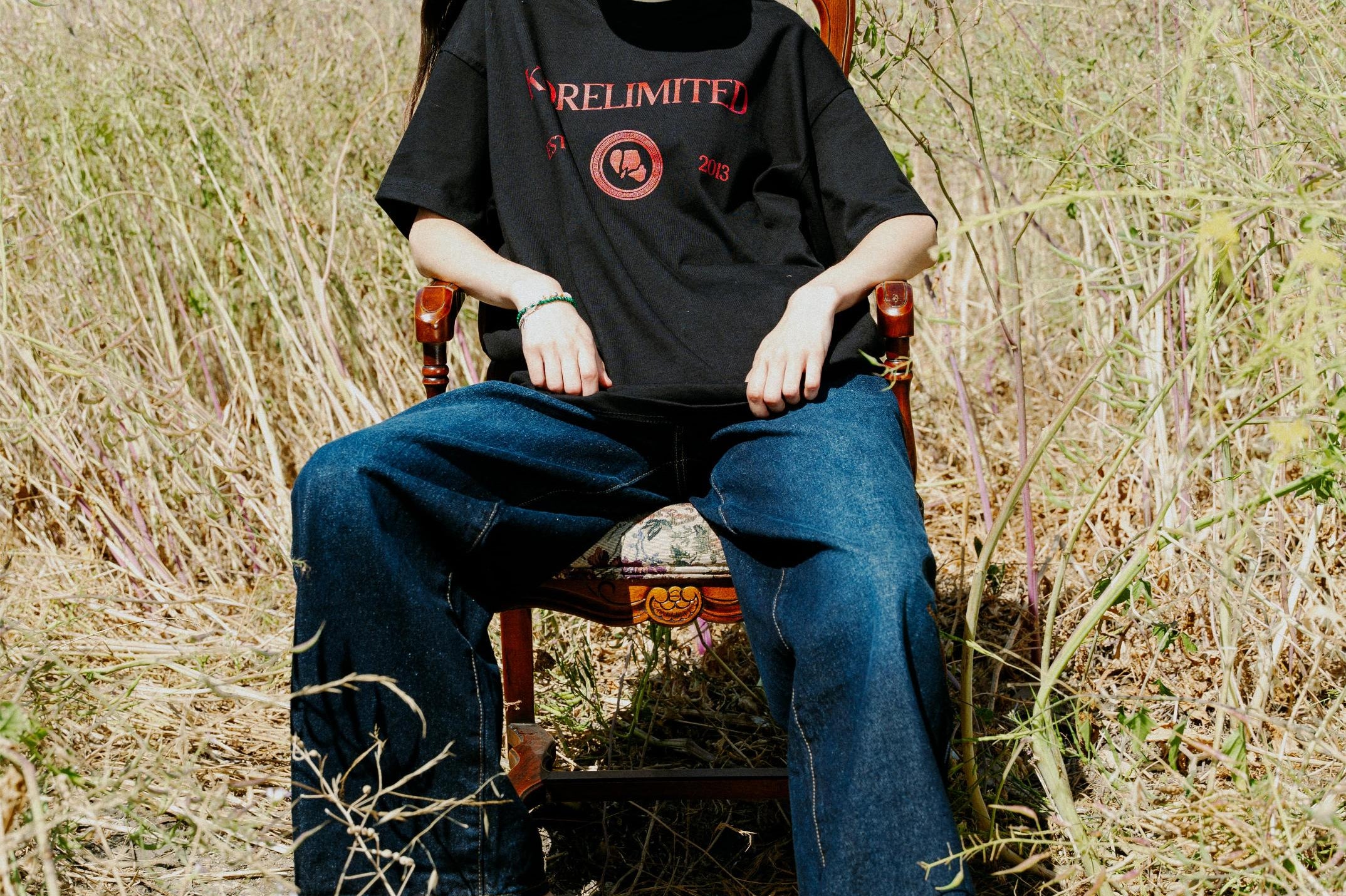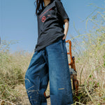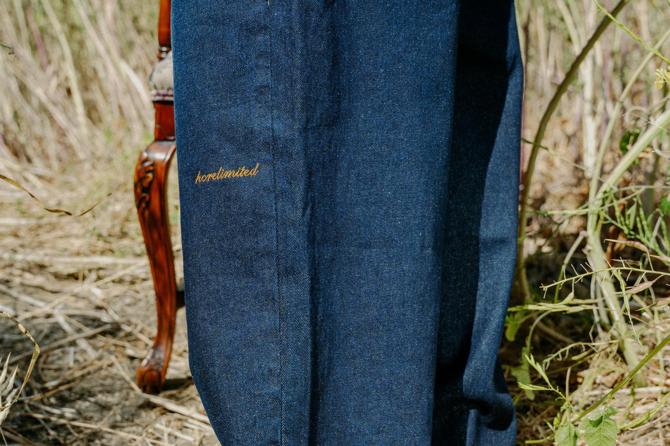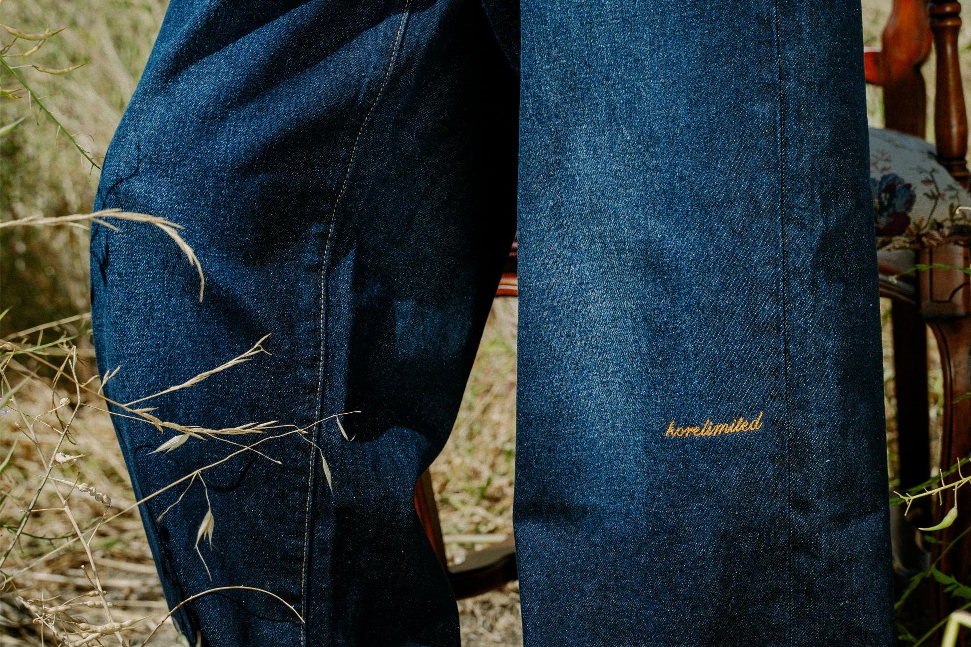 KORE Baggy Denim Pants — naturally faded, roomy denim with the signature KORELIMITED patch on the back. An embroidered Korelimited logo is placed on one of the pant legs. Perfect for staying comfy and fresh, whether you’re headed to class or just hanging out. Also available in Black Denim.