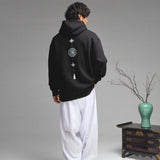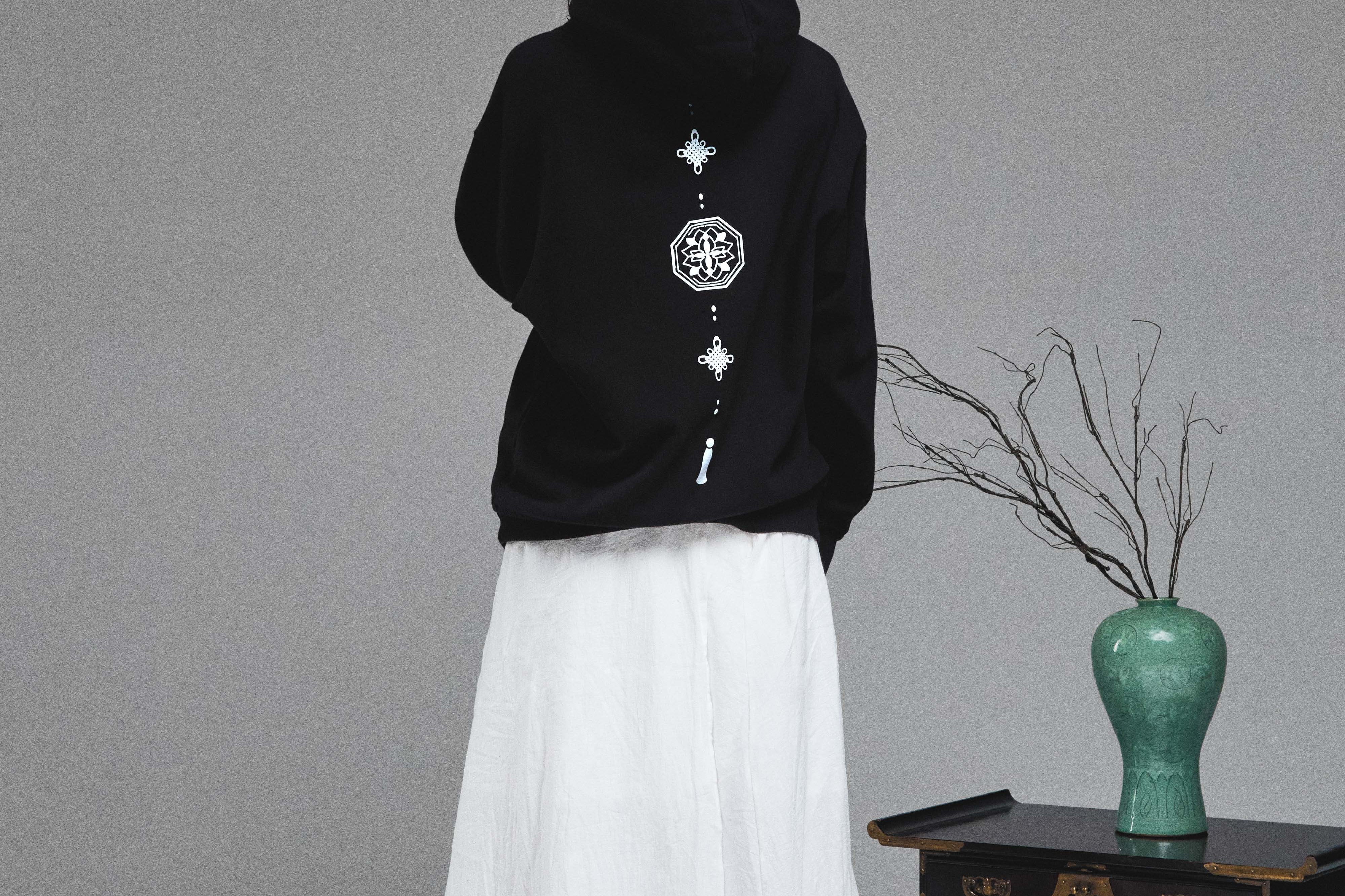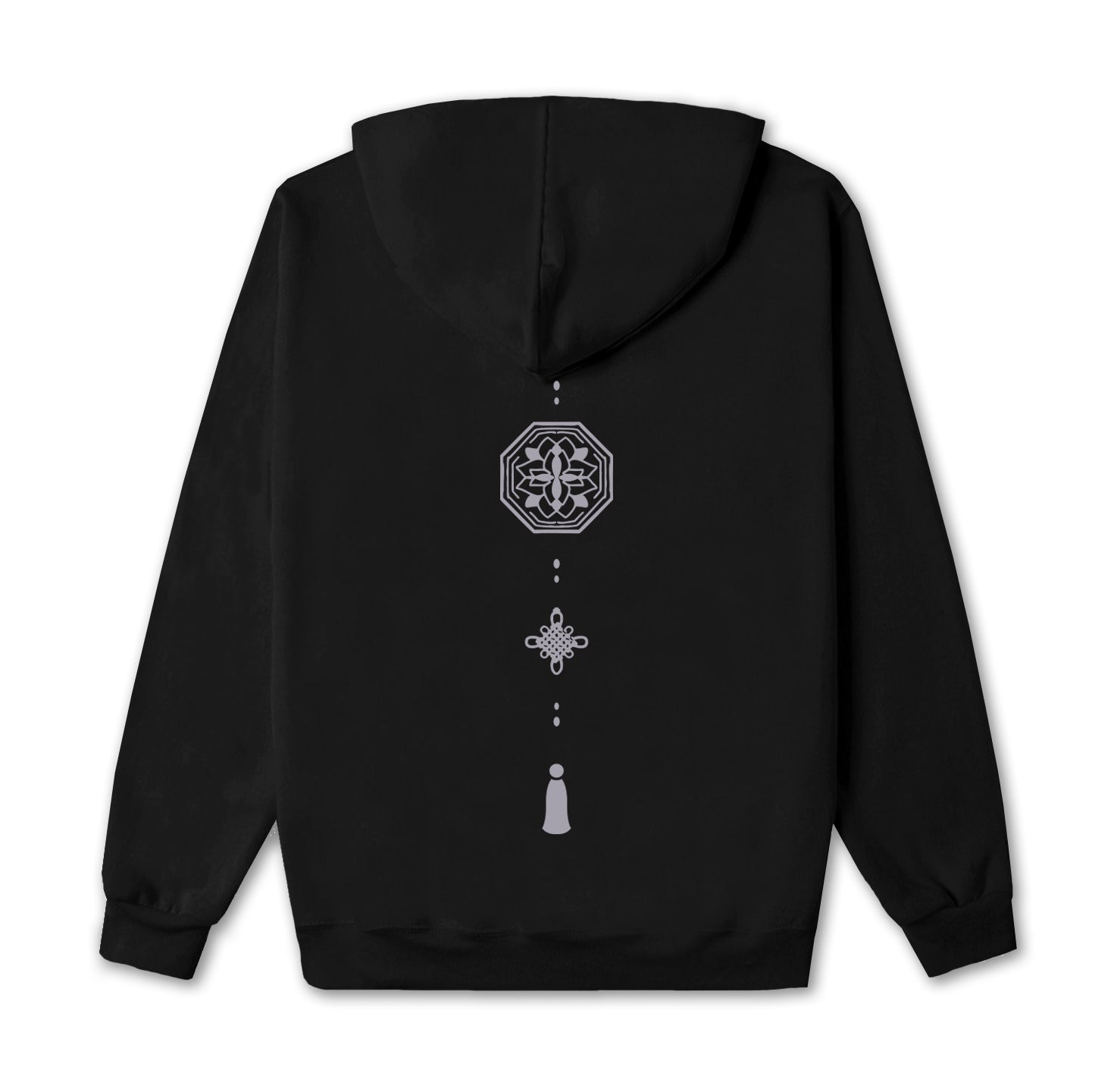 The KORELIMITED Norigae Tattoo Hoodie in Black merges traditional Korean artistry with modern streetwear culture. Featuring bold "KORE" branding on the front and a detailed Norigae-inspired tattoo graphic on the back, this crewneck celebrates heritage, identity, and self-expression through elevated design.