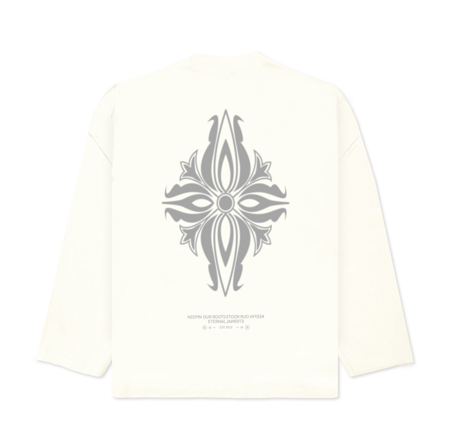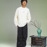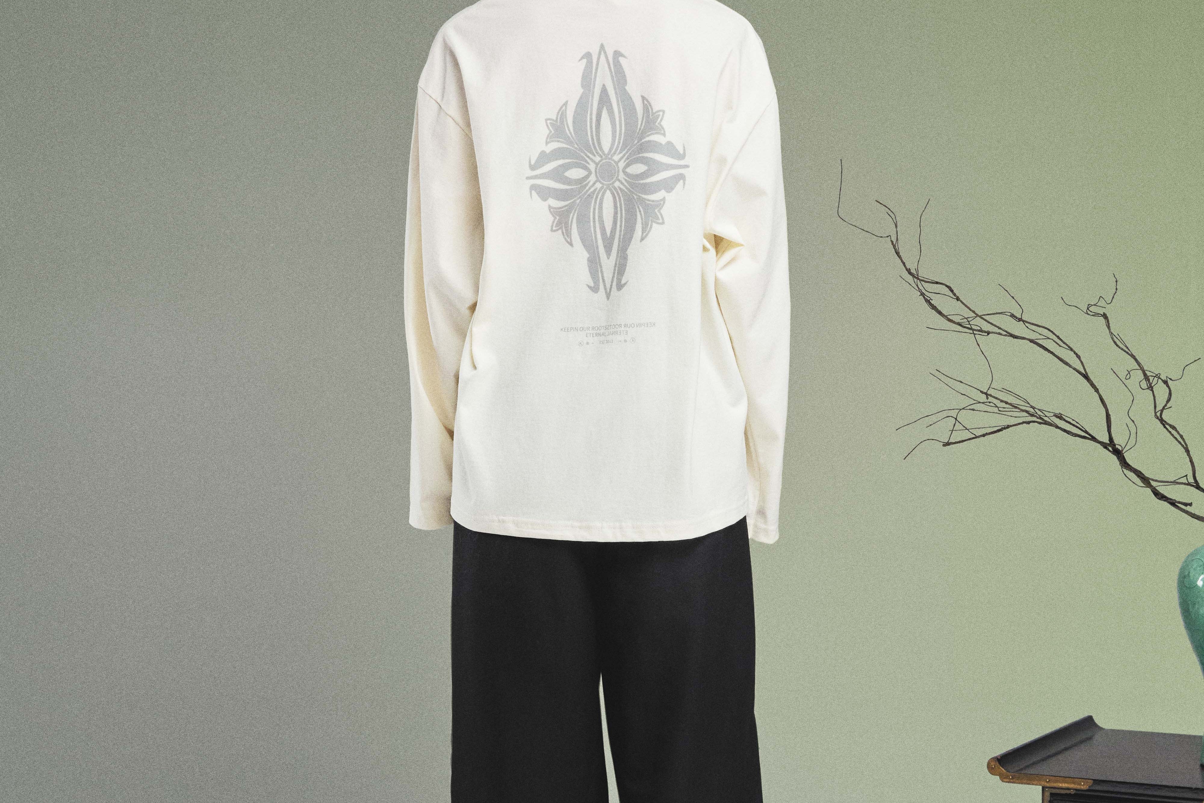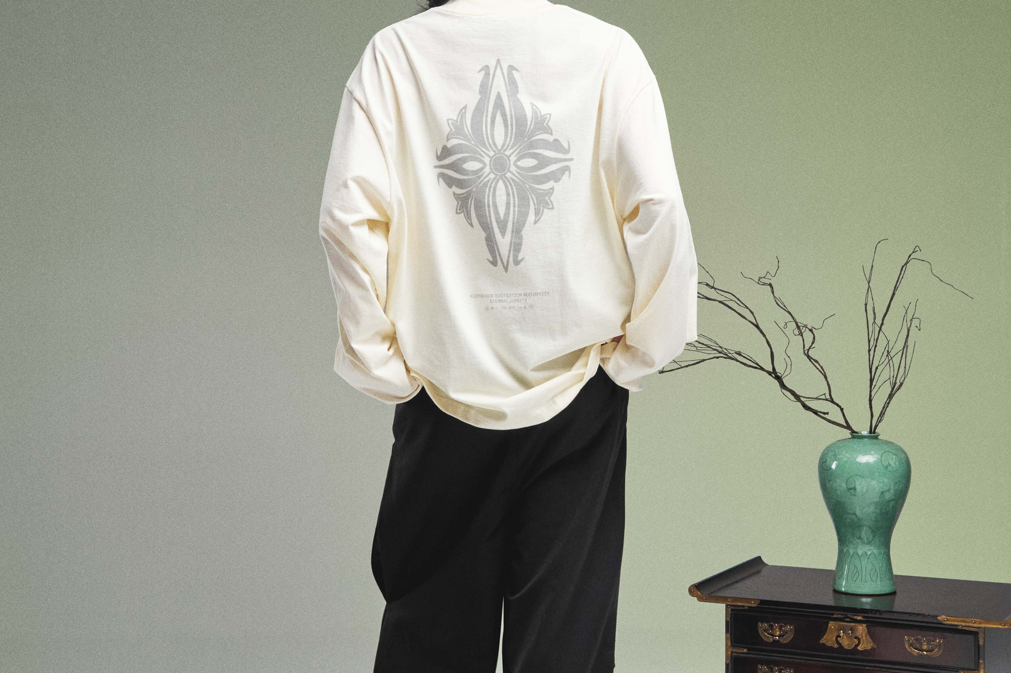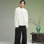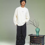 Elevate your look with the KORELIMITED Taepyeong Flower Long Sleeve in Off White. A modern streetwear piece inspired by Korea’s symbol of peace and harmony. Detailed with front and back Taepyeong flower prints and KORELIMITED’s signature heritage motto