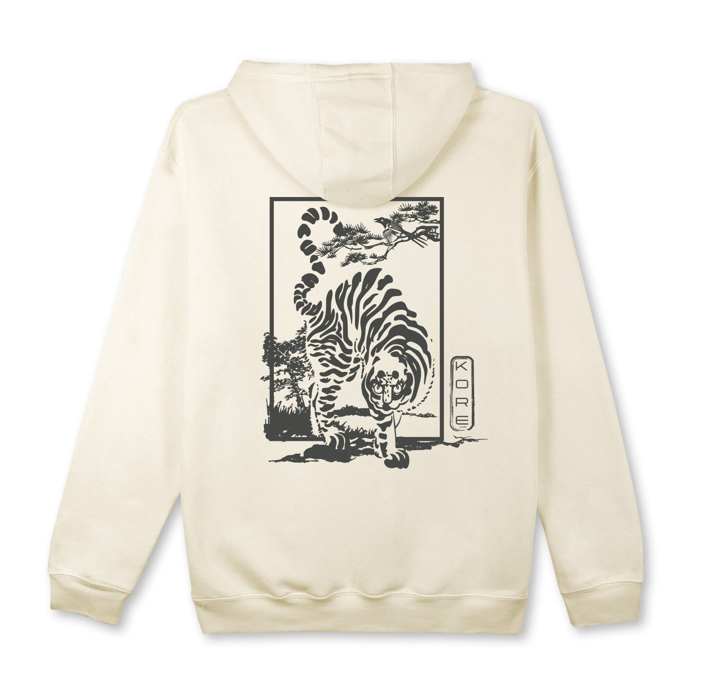 This Tiger & Magpie Hoodie in Cream blends two iconic Korean symbols into one striking design. The tiger embodies courage and resilience, while the magpie brings good fortune and joy. Together, they create a bold story of strength and positivity woven into every wear