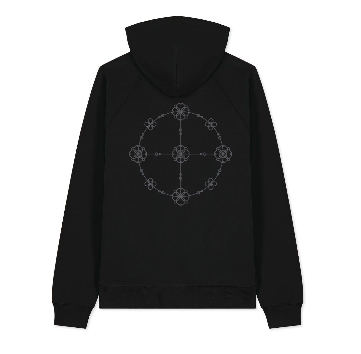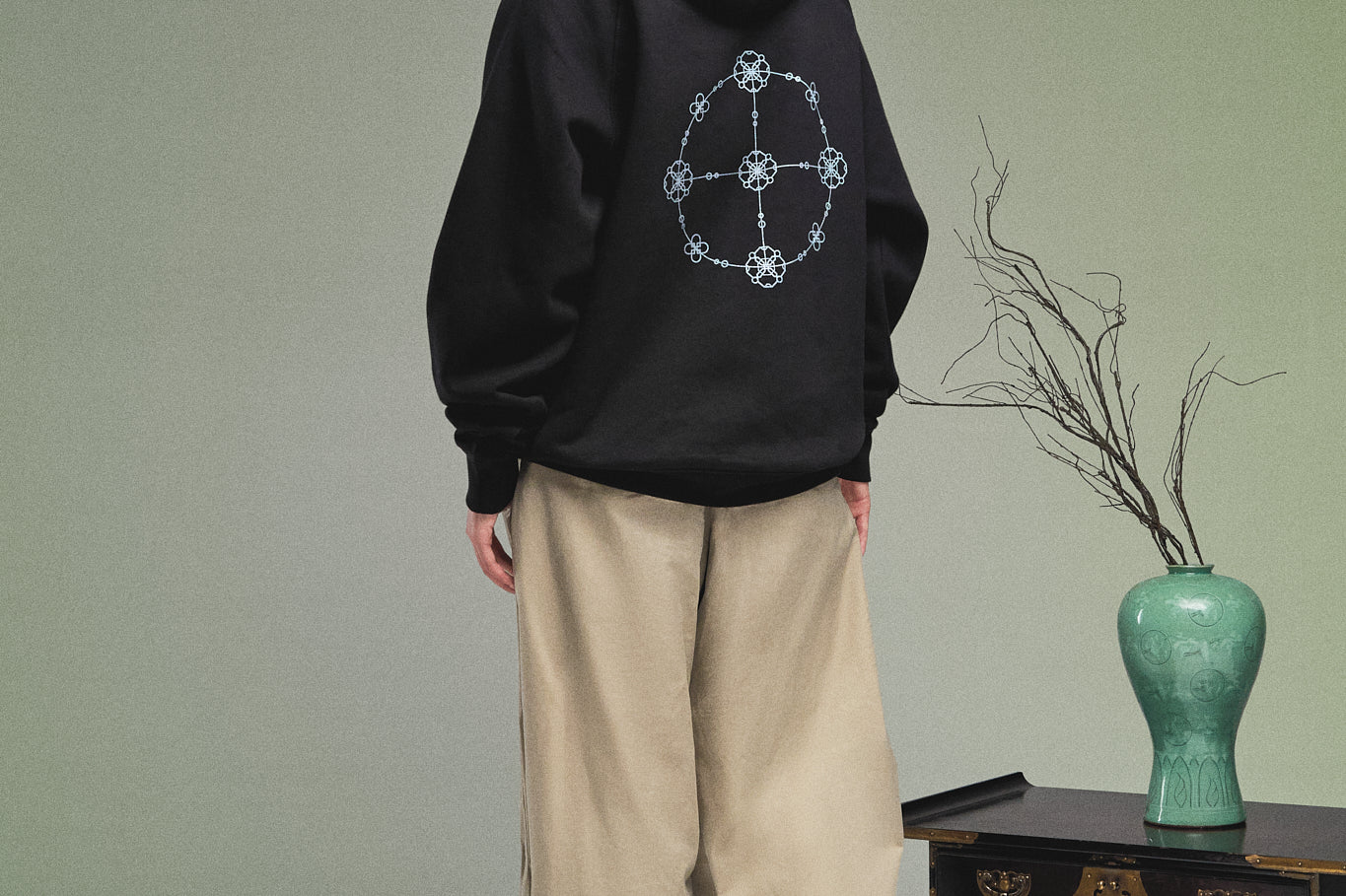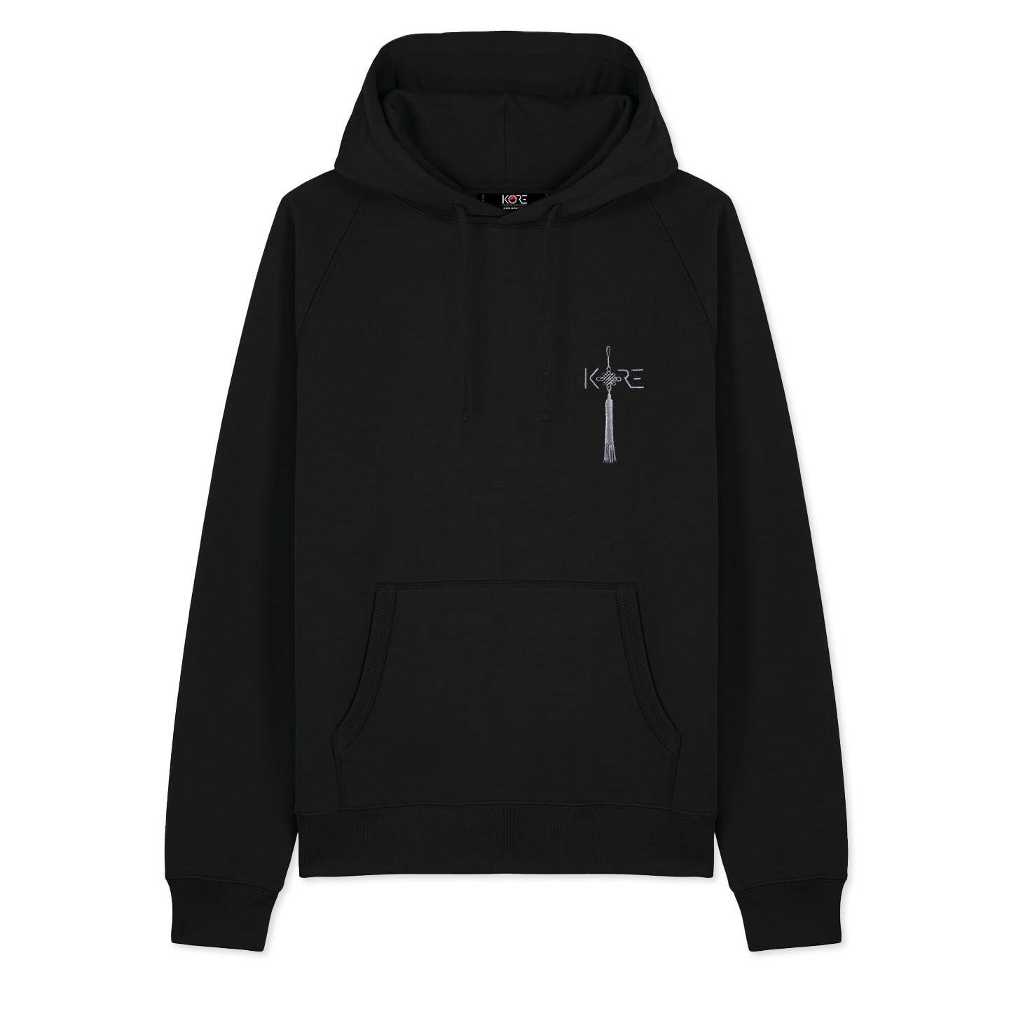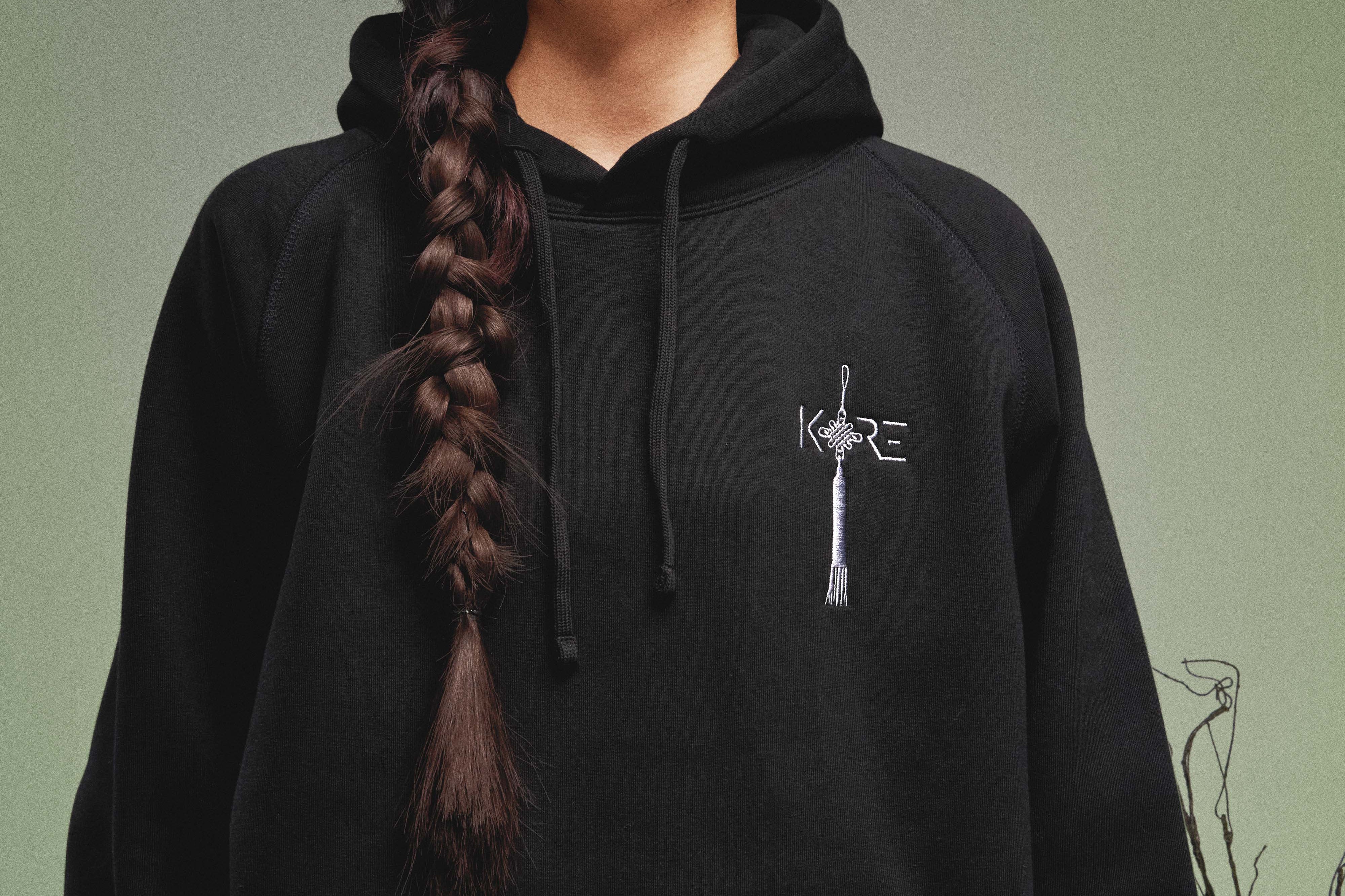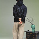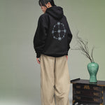 The KORELIMITED Yutpan Hoodie in Black features a back design inspired by the traditional Korean Yutpan board, symbolizing strategy, connection, and luck. This intricate circular pattern reimagines a classic Korean game into modern streetwear art, blending heritage and style under the brand’s motto, “Keepin Our Roots Eternal / 영원한 뿌리. Also available in Oatmeal Heather.